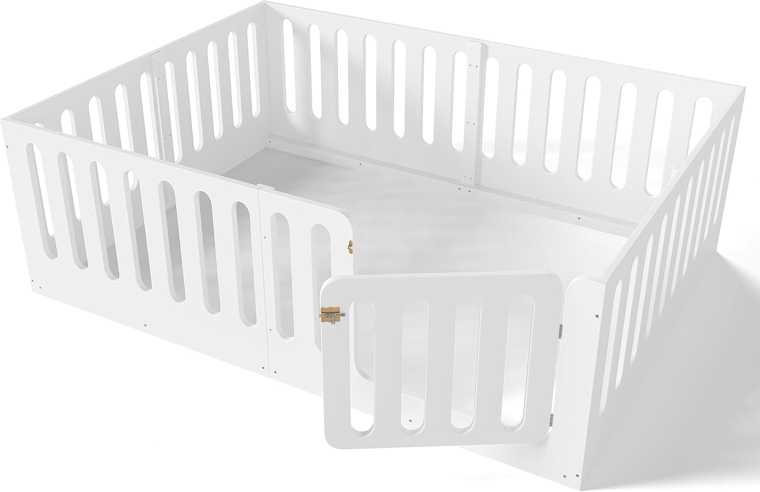 Elevate your child's sleep journey with our Queen Size Floor Bed with High Fence and Door for Kids—a safe, independent, and inspiring Sleep & Play Zone. Designed with a secure low-profile design, this Queen Wood Montessori Floor Bed Frame empowers boys, girls, and children to climb in and out safely, fostering confidence and healthy habits. Crafted from durable solid wood, it ensures lasting stability for active toddlers. The charming door sparks imaginative play, transforming the bed into a cozy haven for rest and creativity. Easy assemble with all tools included, it requires no box spring—just place your mattress for a minimalist setup. Combining safety, function, and timeless appeal, this floor bed is the perfect safe transition for your child's growing years.