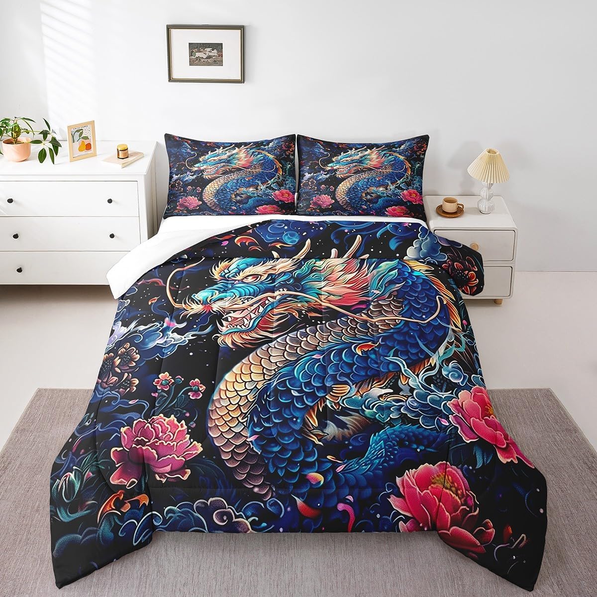 Best blessings: Makeover your bedrooms every season with our Comforter sets. Perfect item for your room, girls boys youth room, master bedroom. Also can order it for your mom, dad, sister, brother, grandma, wife, husband, daughter, son and all other beloved. Size Information: 1 x Twin size down comforter 68"W x 90"L, 1 x quilted pillow case 30"W x 20"L, 2pcs. 1 x Full size down comforter 79"W x 90"L, 2 x quilted pillow cases 30"W x 20"L,3pcs. 1 x Queen size down comforter 90"W x 90"L, 2 x quilted pillow cases 30"W x 20"L,3pcs. 1 x King size down comforter 104"W x 90"L, 2 x quilted pillow cases 36"W x 20"Lx,3pcs. Useful and practical: A luxurious product for homes, dorm rooms, hotels, guest rooms. Practical to use for being polyester, feels like cotton which is super soft and breathable. No chemicals used, No dye substance harming the health of you or your family. Unique design: Vivid Colors won't fade thanks to new 3D digital printing methods. These unique designs match well with various color palettes of your rugs, curtains, headboard, furniture, and all other decor accessories. Personalized: As manufacturers of digital printed home textiles, we follow current trends and bring you the latest home fashion. You can give it to your family or friend, relative or boyfriend girlfriend, or to yourself, the item should be interesting and authentic. Note: The Bedspread and Pillow Shams are printed on the Rront Side Only, the back of them are white colored. After Service: If you have any questions,please send an email,we will provide you with a solution within 24h.