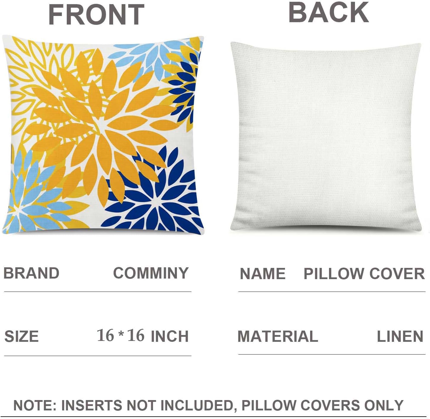 • Standard Pillow Case: These throw pillow covers are available in 16x16 Inch, 18x18 Inch, 20x20 Inch, 12x20 Inch Sizes; fit for most pillow inserts. WARM HINT: Our pillow covers are made to ensure a snug fit. please allow 0.3-0.8inch measurement deviation. No Cushion Inserts.