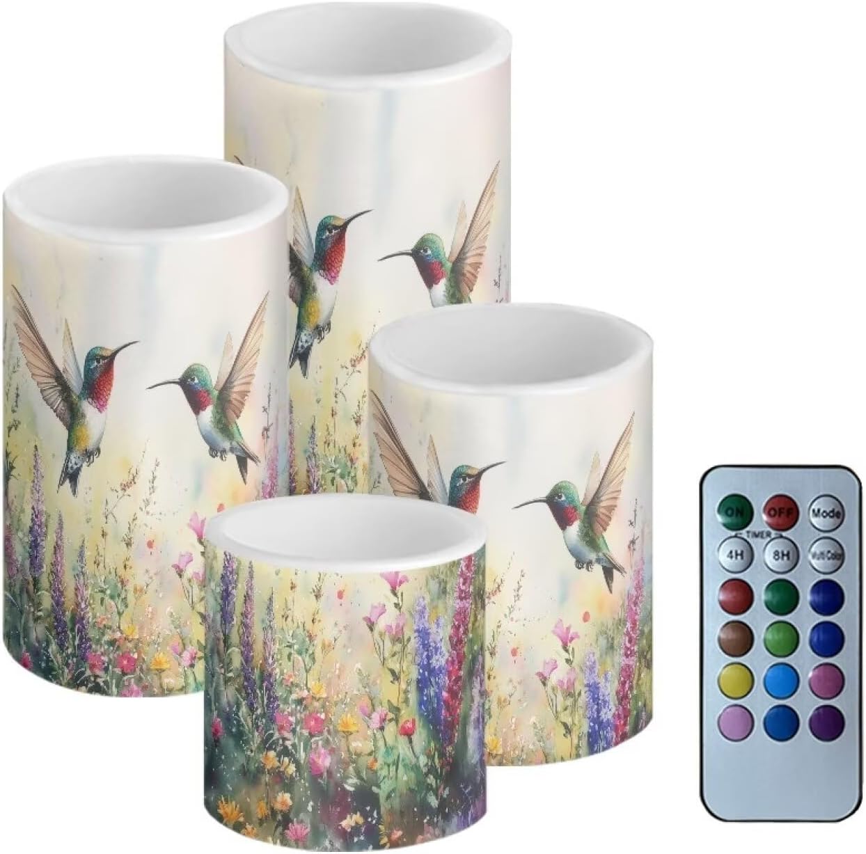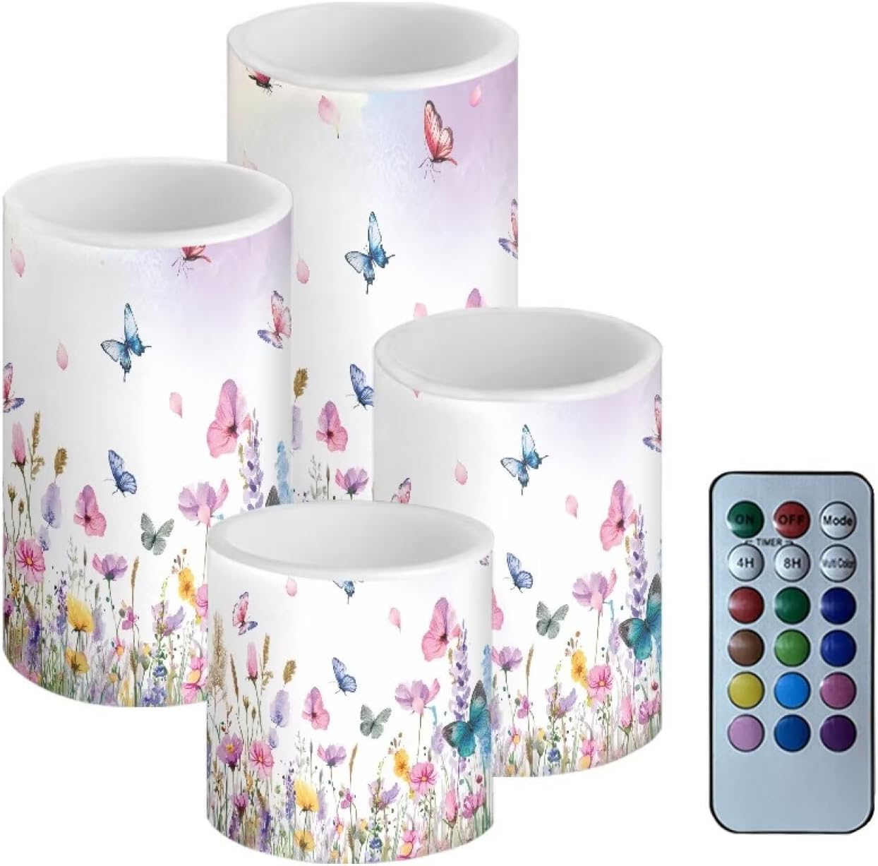 Candles Sets(not battery include) Material:Premium frosted plastic. Color: ivory color Candles comes in 4 different size: --Diameter 7.5cm/3inch Height 7.3cm/2.9inch --Diameter 7.5cm/3inch Height 9.7cm/3.8inch --Diameter 7.5cm/3inch Height 12cm/4.7inch --Diameter 7.5cm/3inch Height 14.5cm/5.7inch Features: --with remote control,12 colors for you choose,have 4-hour or 8-hour timing mode --warm yellow tealights with miniature flicker --turn on/ off manually. --battery operated by 3 x AAA batteries. (Batteries not Included) --these flameless candles set is long lasting,buy them once, enjoy them for years to come! --suit for any spaces,any weather,indoor or outdoor. --4 pieces battery candles,create a romantic atmosphere and sparks interest for wedding,parties,home,birthday,festival and other occasions. without the worry of fire hazard, wax melting or allergic scent, warmer and peaceful atmosphere will make you enjoy your event.You will love it. Using Tips: 1.When the battery is too weak for normal power supply, your flameless candle will dim light, please turn off the candle and replace the battery. 2.Do not mix old or new batteries. 3.when not in use for a long time, please remove the battery from the LED candle. Note: 1.Due to the different camera or lighting environment, please allow a little chromatic aberration. 2.Due to different measurement methods, please allow an error of 1-3mm. Thank you! 3.Thank you for your business! If you have any questions, please don't hesitate to contact us directly.