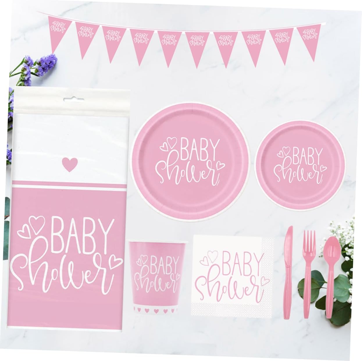 Package List 1 x table cover 1 x pennant banner 16 x 9inch plate 16 x 7inch plate 16 x paper cup 16 x napkin 20 x knife 20 x fork 20 x spoon Features - Material: Paper and Plastic disposable tableware kit. - Color: Blue Party Supplies Set. - Package size: 35 x 28 x 10cm/ 13.78 x 10.63 x 3.94inch birthday party banner. - tableware, great for serving for your birthday party Shower Kit. - Your and guests will by using these party supplies birthday party tablewares. - Simple but printing design, attractive to . - This set includes 1 table cover, 1 pennant banner, 16 9inch plates, 16 7inch plates, 16 paper cups, 16 napkins, plastic knife, fork and spoon, each for 20. - Birthday banner for your birthday party decorations! The banner will definitely catch your guests' eyes.Goods Information Shower Kit Try a set and make your birthday party more meaningful and joyful.birthday party banner This item is a set of supplies, safe and thicken.birthday party tablewares birthday party tableware and decor, great for serving for your birthday party