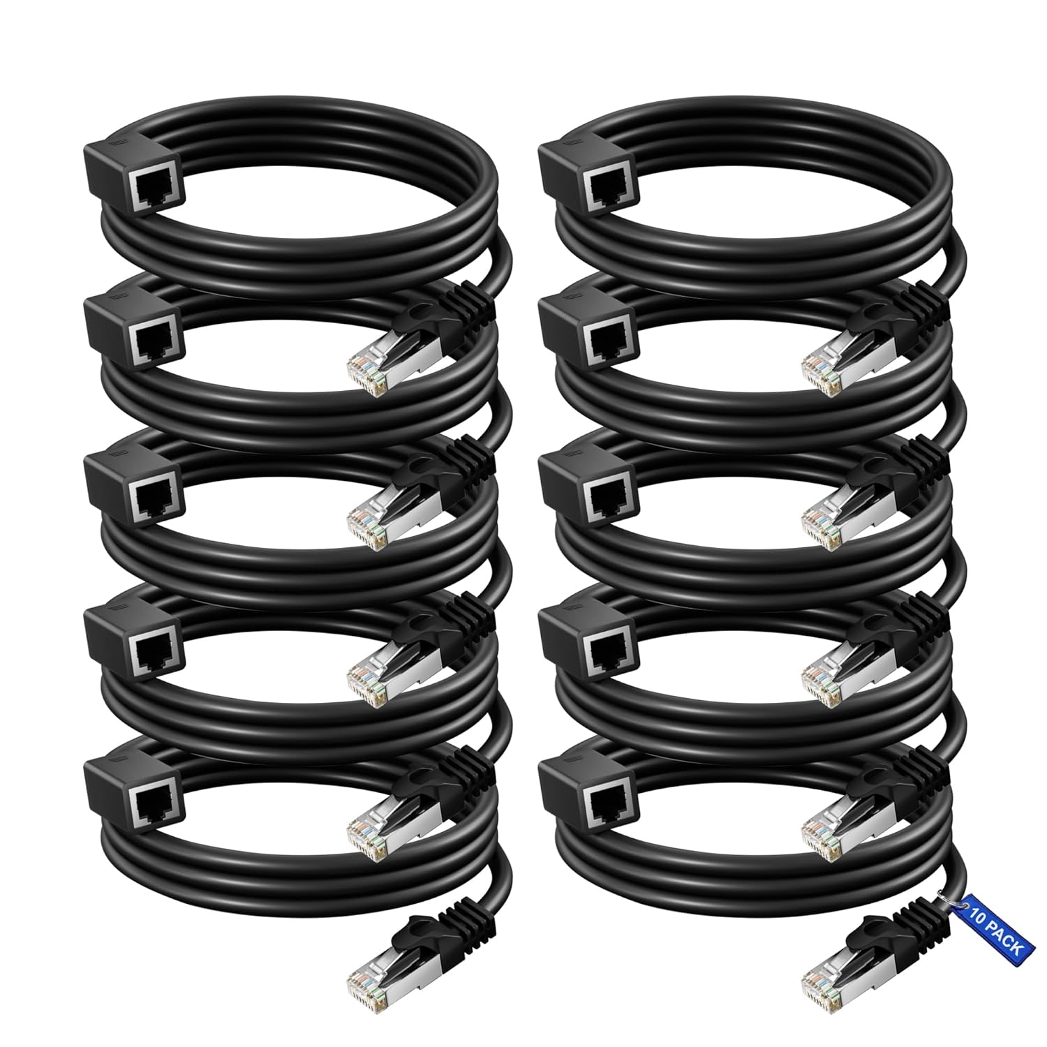 Ethernet Extension Cable, Cat 6 Ethernet Cable Extender, Internet Cable with Shielded RJ45 Male-to-Female Connector, LAN Cable Extension for Patch Networks, Black (5 Feet, 20 Pack)
