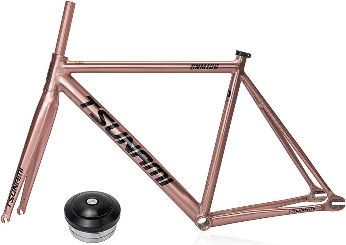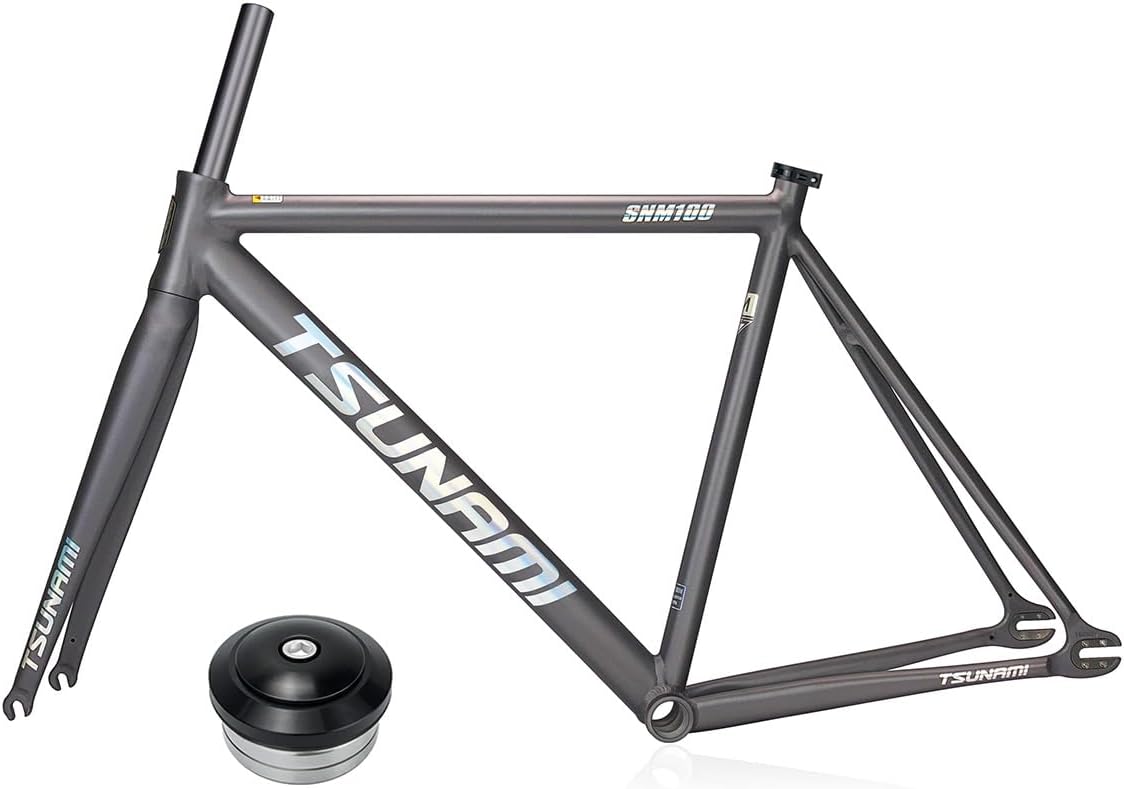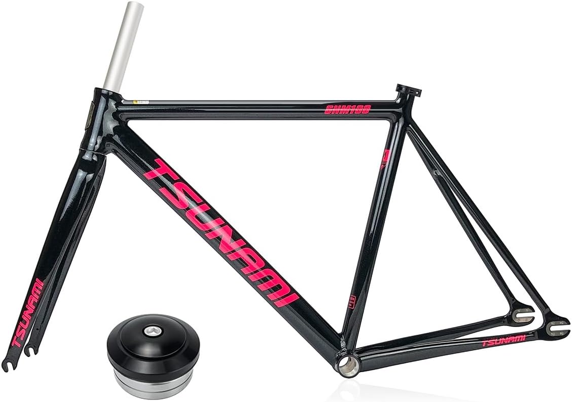 Fixed Gear Bike Frameset 700C Aluminum Alloy Racing Track Bike Frame 49/52/55/58cm Quick Release Frames 100/120mm Frame Size: 49/52/55/58cmMaterial: Aluminum Alloy For wheel: 700CBrake: C brakeHeadset: 41*41mmSeatpost: 27.2mmBottom Bracket:68mm threaded bottom bracketQuick Release: front 100mm rear 120mm QRWeight: Fame about 1493g,fork 665g(M)Package:Frame,Fork,Seatpost clamp,HeadsetNote: Please check if the size of bike frame is correct before purchasing.