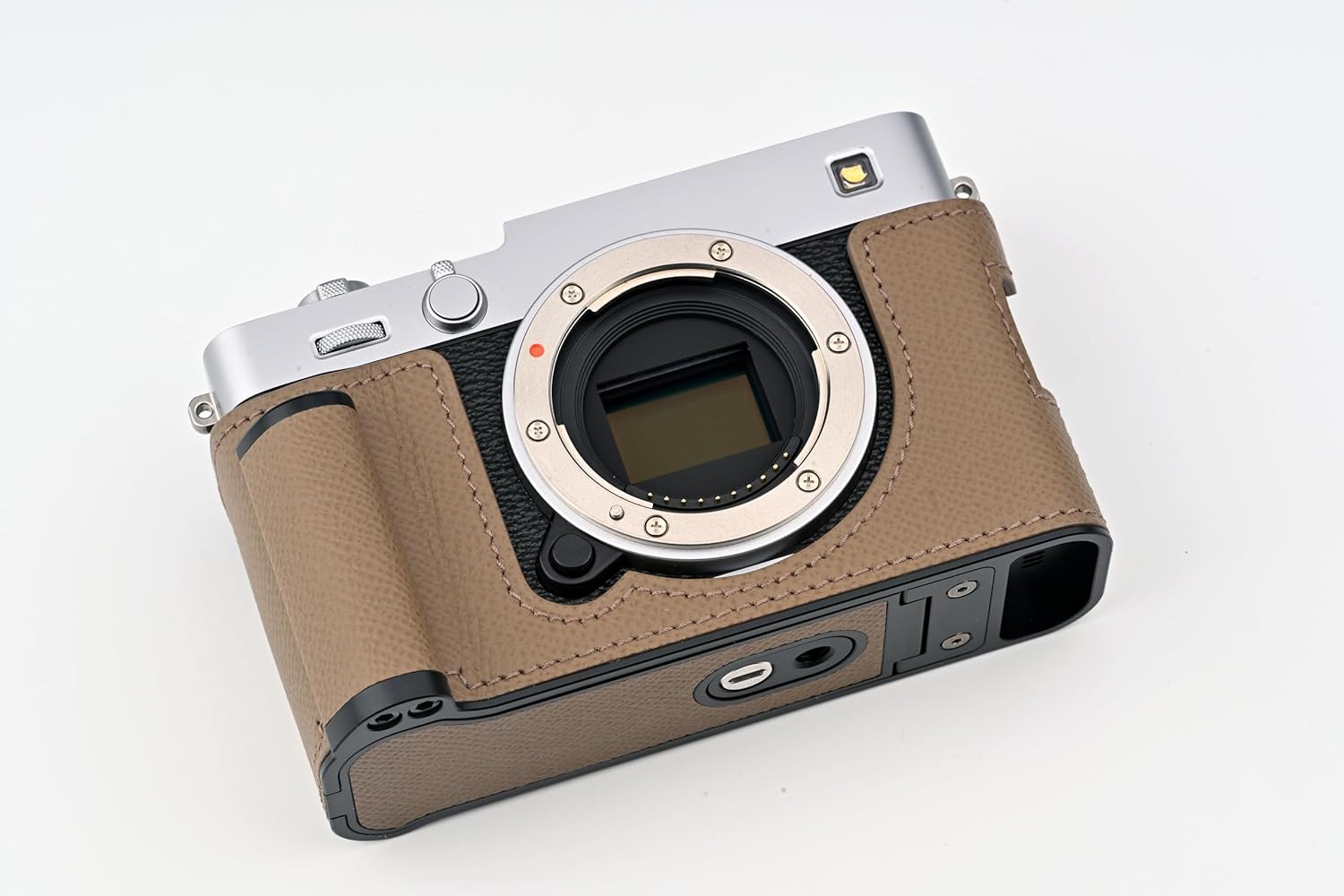 Suitable for: Fujifilm X-E5 Camera, not fit other machine. Please check your camera model to make sure the item fits for you before ordering Stylish and retro design. Your camera will look more stylish when you carry this camera case. High quality natural leather is used to protect the camera from scratches, it can be used for a long time. This product combines natural leather and high-quality aviation aluminum alloy, making the whole camera case high-end looking,especially suitable as a gift! Easy to install, convenient to use, no need to take out the camera when taking photos. Compact, lightweight and extremely durable, add no bulks to your cameras. It provides excellent protection without compromising the ability to access the controls. Makes it easy access to all featured buttons, battery door, memory card etc. In addition, you can install it on tripod without remove it. Protect your camera from dust, bumps, scratching, normal wear. Package Includes:1x Protective leather camera Case