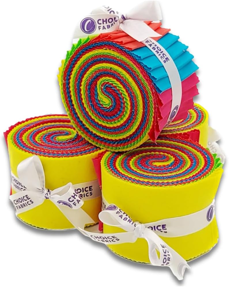 Refresh the essentials with a jelly roll from Choice Fabrics. Designed with quilters in mind, our rolls feature high-quality designer fabrics, perfect for adding a touch of elegance to your projects. Each roll has 20 precision-cut fabric strips, measuring 2.5 inches wide by the full 45 inch fabric length, ensuring consistent sizing for effortless piecing and minimal waste. The premium 100% cotton material offers superior softness, durability, and vibrant color retention, making it ideal for quilting, sewing, and crafting.