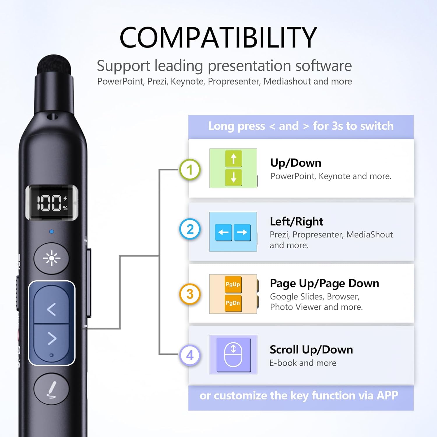 | Additional Features | Digital Display, Telescopic Pointer, Touch Screen Stylus, Vibration Alert |
