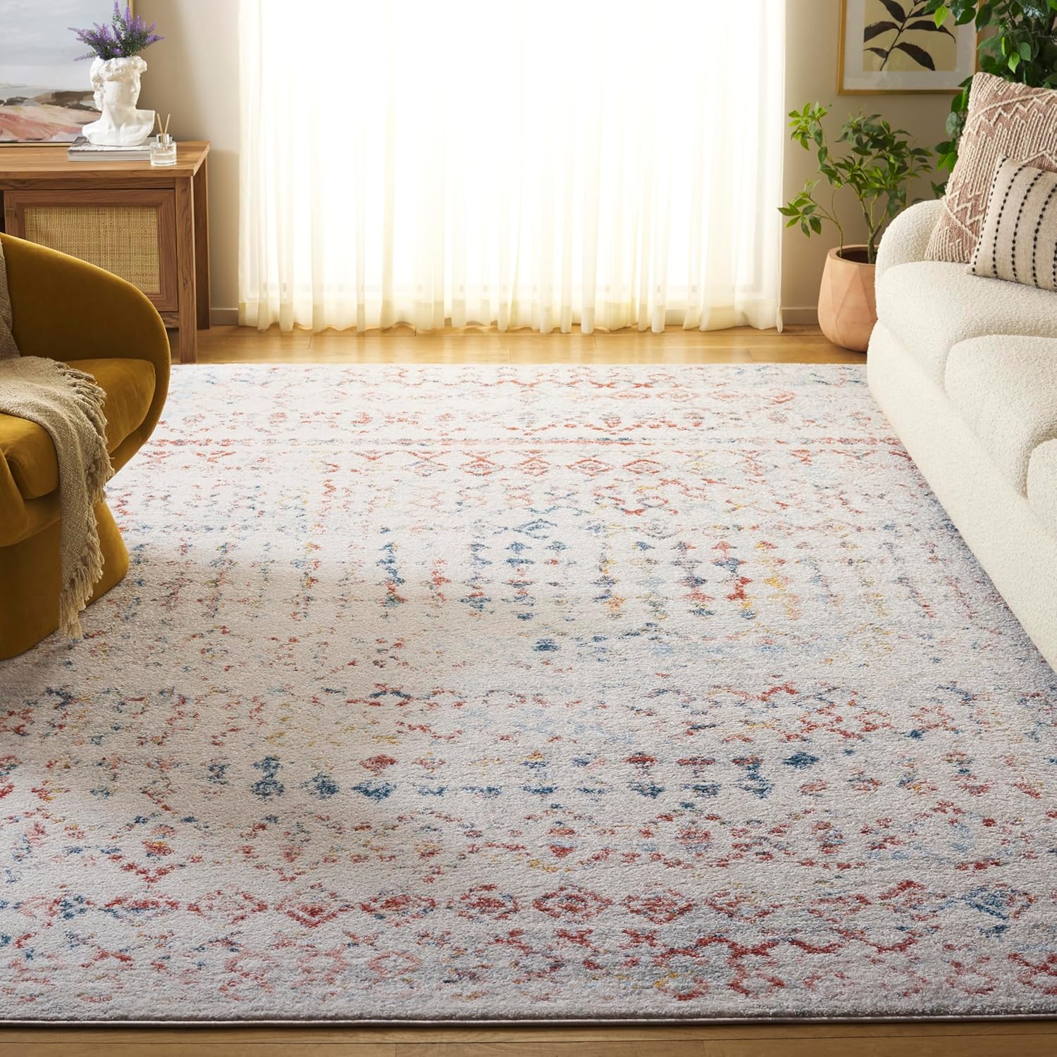 The SAFAVIEH Tulum Collection brings refreshing style to any space with its versatile patterns, trendy hues, and rustic, craft-inspired motifs that add warm boho character to modern or transitional décor. Machine-woven from soft synthetic yarns, each rug features a thin, easy-to-manage pile that provides a comfortable feel underfoot while remaining durable for everyday living. Rug colors may vary slightly due to dye lot differences, lighting, and individual screen settings. Upon arrival, simply reverse roll and allow any temporary creases to settle naturally. For added comfort, stability, and floor protection, a SAFAVIEH rug pad is recommended. Rug sizes may vary slightly.