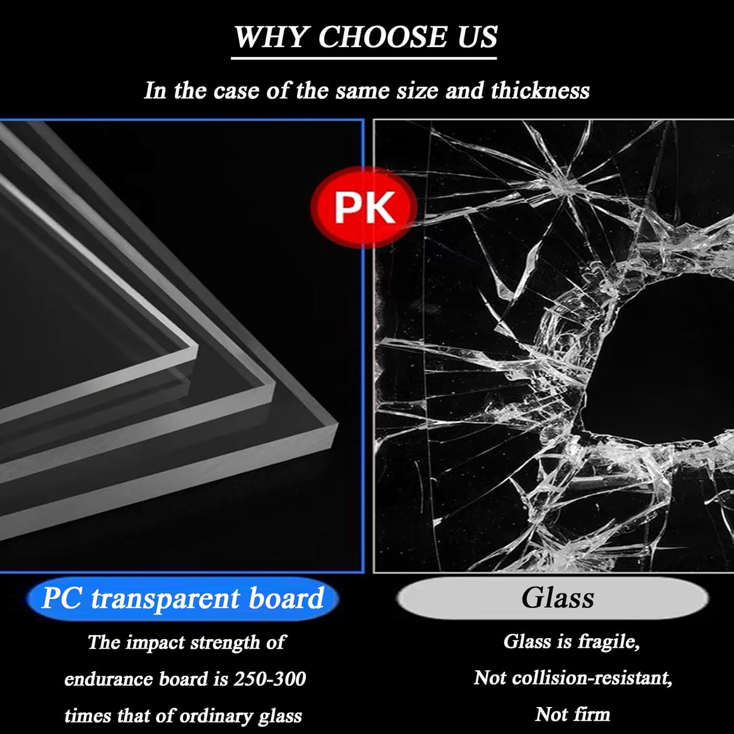 - The transparent plastic panel has the characteristics of smoothness, high light transmittance, waterproof, and heat insulation. Suitable for outdoor and indoor use.-Light transmittance/anti-UV, the transmittance is as high as 89%, effectively blocking ultraviolet rays- This clear and weatherproof plant cover is easy to fold and cut. Whether used as a replacement part for a greenhouse, cold frame, garage or for a DIY project.- Transparent roof panels are waterproof, leak-proof and heat-insulating. Whether it's hot summer or cold winter, it's a good choice.--Provides excellent protection for plants from harmful environmental influences such as cold, frost, wind and heavy rain, helping to keep plants, vegetables and flowers safe while allowing natural light to shine through.Product name: Transparent roof panel/PC endurance boardMaterial: polycarbonateDimensions: width x length (customizable)Thickness: 1.2 mmColor: transparentProduct features: high transparency, high flame retardancy, high toughness, sun protection, UV protection, rain resistance, heat and cold resistance, impact resistanceApplicable occasions: roofs, carports, greenhouses, greenhouses, solariums, lighting channels, LED light boxes, highway soundproof walls, bus stopsPackage Contents:1x PC endurance boardNoticeDo not bend into blind corners, right angles or pierce with sharp objects.Kind tips:1. The size is measured manually, there may be an error of 1~2cm, please refer to the actual product, thank you for your understanding!